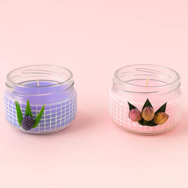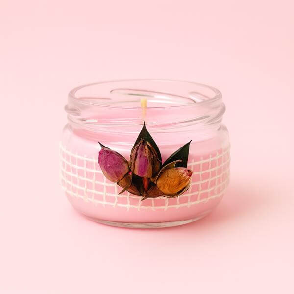 Indulge in the calming scents of rose and lavender with this handmade candle set, designed to bring peace and elegance to any space.
